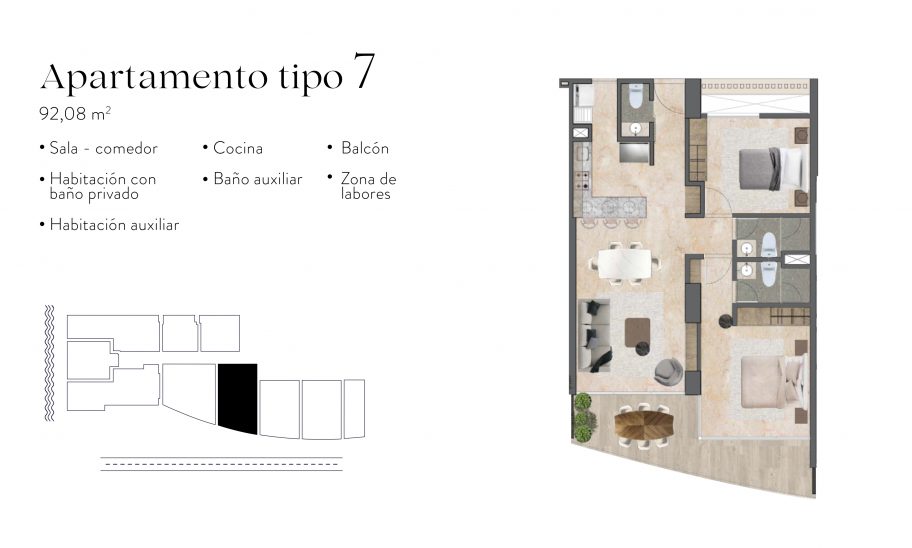 Las zonas sociales del edificio incluyen sauna, turco, spa, piscina, parque infantil, salón de juegos, pequeña cancha de fútbol, gimnasio, BBQ, salón social, cancha y coworking para que disfrutes de todas las comodidades que necesitas sin tener que salir de casa.